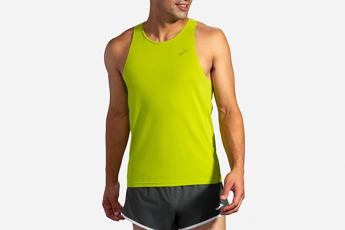 Give it your all in our lightest singlet. Ultralight, breathable fabric wicks away sweat to keep you cool on race day or during hot-weather runs.